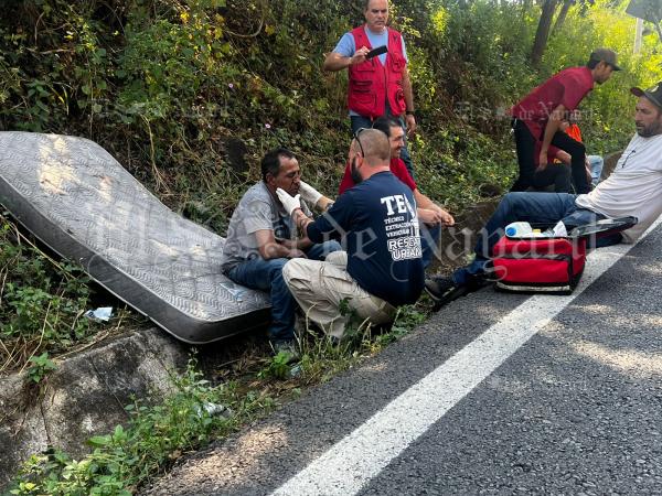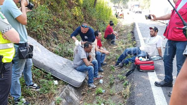 Durante el accidente, el conductor salió proyectado de la cabina con todo y asiento, resultando con una herida cortante en la cabeza, heridas en la espalda así como una posible fractura de costilla y tabique.
