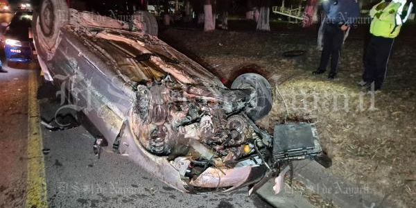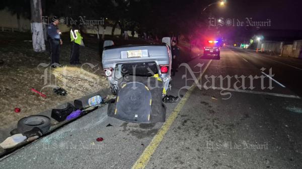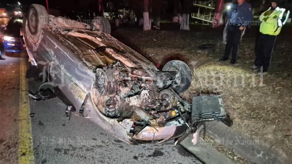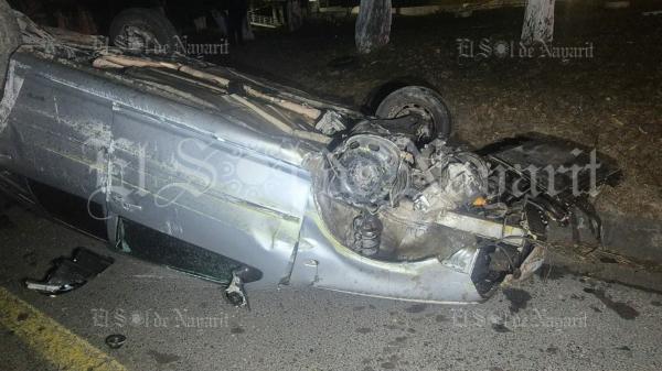 Durante esta madrugada de viernes ocurrió un aparatoso accidente sobre el Libramiento Carretero de Tepic a la altura del kilómetro 6+800 en la colonia Miravalles de la capital nayarita.