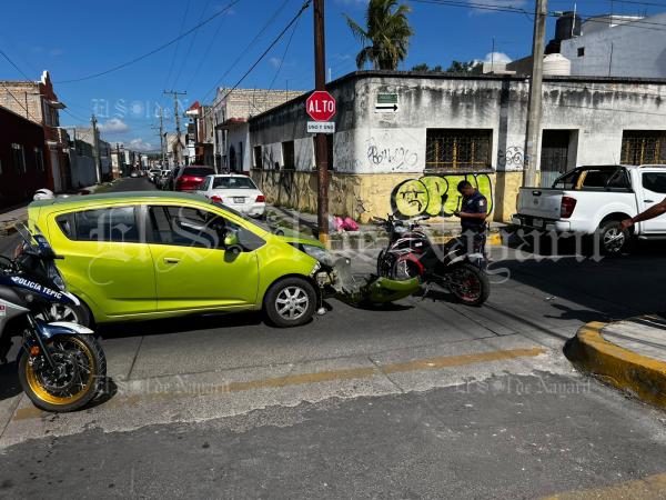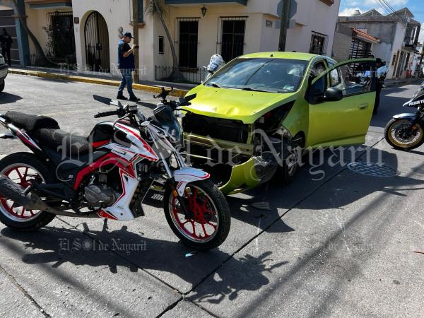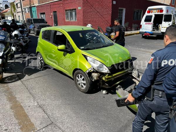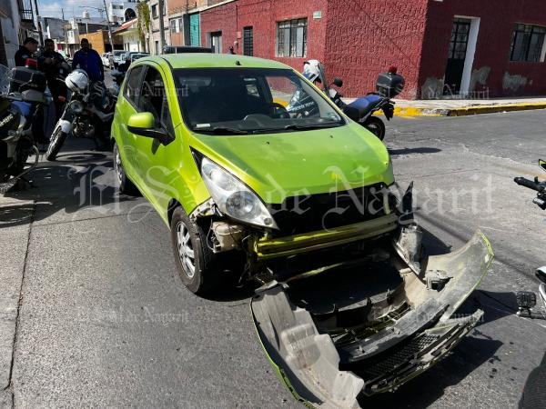 Este martes 3 de febrero se registró un accidente en el cruce de las calles Monterrey y Zaragoza de la zona Centro de Tepic, dejando como saldo a una mujer lesionada.