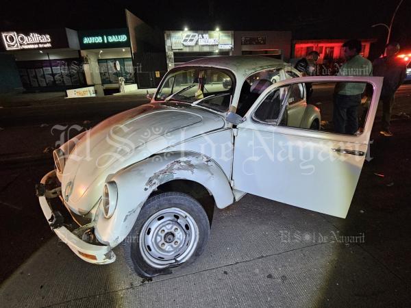De acuerdo con la información, un vehículo de la marca Mazda en color tinto circulaba con dirección hacia Xalisco cuando un Volkswagen tipo Vocho habría dado una vuelta prohibida y le cortó la circulación al Mazda, provocando el impacto.
