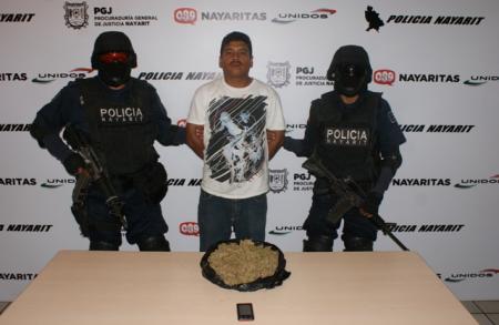 Aproximadamente a las 5:00 de la tarde del día de ayer elementos de la Policía Nayarit detuvieron a quien dijo llamarse Jorge Luis Velázquez Sanava, de 27 años de edad, originario y vecino de esta ciudad, con domicilio ubicado en la colonia Acayapan por venta y distribución de droga.