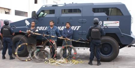 Las investigaciones realizadas por el área de investigación de la Policía Nayarit relacionan a los detenidos en al menos 10 atracos contra la CFE, donde de igual manera han sustraído grandes cantidades de cobre.