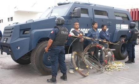 Los detenidos fueron capturados por los efectivos policiacos el día de ayer, dando un duro golpe a una banda que se dedicaba al robo de cobre en establecimientos, desarticulándola y aprehendiendo a los 3 integrantes que la conformaban.