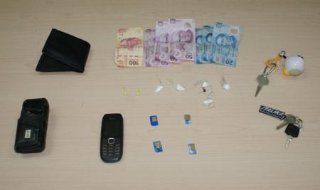 2 envoltorios de plástico que contenían en su interior una sustancia granulada con las características propias de la droga denominada cristal.