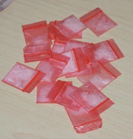 18 envoltorios color rosa conteniendo una sustancia cristalina y granulada con las características propias de la droga conocida como cristal.