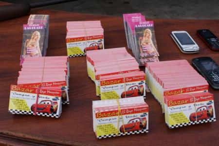 Alrededor de 5 mil tarjetas de presentación con distintos mensajes y números telefónicos.