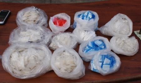1,700 envoltorios que contenían drogas de las denominadas: cristal, cocaína, piedra base.