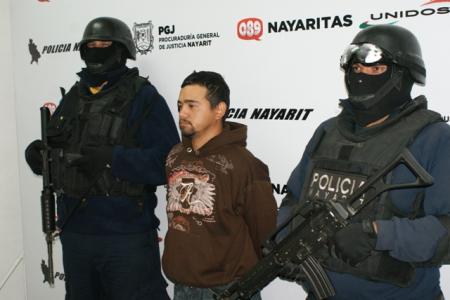 Elementos de la Policía Nayarit detuvieron a un peligroso homicida identificado como Emmanuel Salas Gutiérrez de 25 años de edad, originario de Río Colorado, Sonora y vecino de esta ciudad con domicilio en la Colonia Lomas de la Laguna, quien el pasado mes de enero en compañía de otros sujetos cobró la vida de José De Jesús Alfaro García.