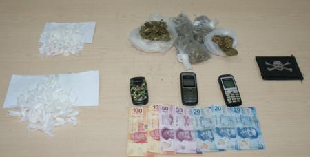 La detención se realizó tras una denuncia ciudadana en la cuál se indicaba que un sujeto se encontraba vendiendo droga bajo el puente que comunica a los poblados de Guayabitos y La Peñita de Jaltemba; por lo que los efectivos acudieron al lugar localizando al sujeto en cuestión y al realizarle una minuciosa revisión, se le encontró lo siguiente.