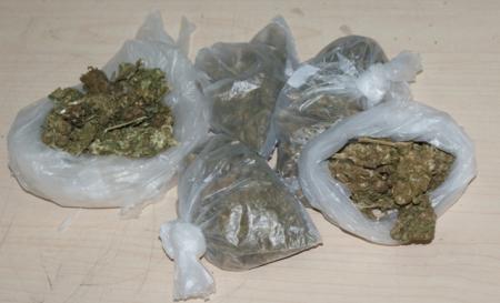 2 bolsas de plástico trasparenten con un vegetal verde y seco con las características propias de la marihuana.