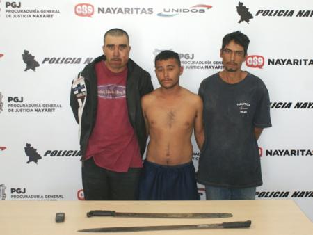 Elementos de la Policía Nayarit detuvieron a 3 sujetos que se dedicaban a robar y violar a sus víctimas, esto sobre la carretera federal 200, a la altura del poblado de López Mateos, municipio de Xalisco; utilizando machetes para cometer sus ilícitos.