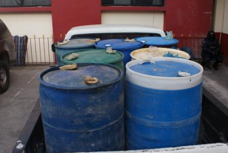 La detención se llevó a cabo sobre el crucero que conduce al poblado de tetitlán, en el municipio de Ixtlán del Río, donde le marcaron el alto a un vehículo marca Chevrolet, color azul, sin placas de circulación, dentro del cual transportaban 7 tambos de plástico en los que contenían gasolina, misma que de acuerdo a lo dicho por los detenidos, fue robada de algunas pipas de Pémex.