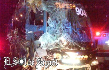 Los hechos se registraron en la autopista Tepic-Crucero de San Blas sobre el Crucero de Trapichillo, cuando un camión de pasajeros de la línea Tufesa tuvo una falla mecánica en los frenos, impactándose contra la parte trasera de una pipa de gas.