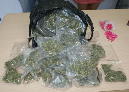 * 69 bolsas de plástico transparentes con yerba verde al parecer Marihuana.