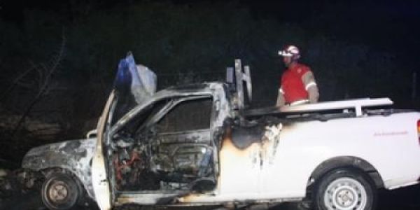 La Secretaría de Seguridad Pública Tránsito y Vialidad, informó que siendo aproximadamente las 04:40 horas, les reportaron desde el módulo de emergencias 066, sobre una camioneta que era pasto de las llamas.