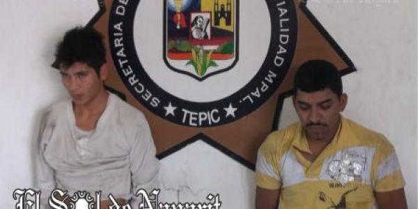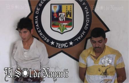 La detención de estos sujetos identificados como Víctor Manuel Álvarez, de 21 años de edad y Héctor Abel Pérez Espinoza, de 26 años de edad, fue en calle 5 de Febrero, cerca de la gasolinera de la colonia Mololoa.
