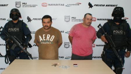 Durante un recorrido de vigilancia implementado en las inmediaciones del poblado de El Llano, municipio de San Blas; elementos de la Policía Nayarit lograron la captura de dos sujetos que se encontraban realizando acciones de compra-venta de estupefacientes, mismos que fueron identificados como: