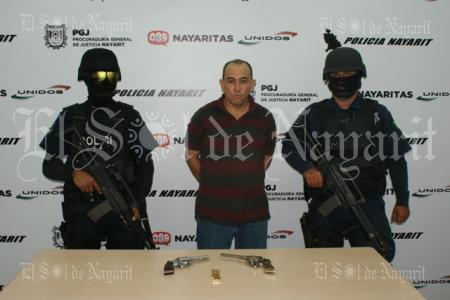 En un recorrido de vigilancia implementado en el interior de la colonia Tierra y Libertad ubicada en esta ciudad, elementos de la Policía Nayarit detuvieron a un sujeto que fue identificado como Primo Orozco Cárdenas de 44 años de edad, quien es originario y vecino de Tepic con domicilio en la colonia antes mencionada, a quien luego de una revisión corporal le fueron aseguradas dos armas cortas.