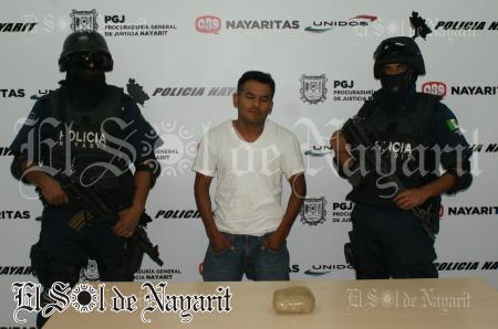 Debido a lo anterior fue detenido y le fueron asegurados el envoltorio y el vehículo, quedando a disposición del Agente del Ministerio Público correspondiente.