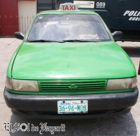 Un vehículo del servicio público taxi-, tipo Tsuru, marca Nissan, color verde, con número económico 1093, con placas de circulación 36-96-MDB del estado de Nayarit.