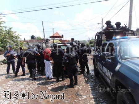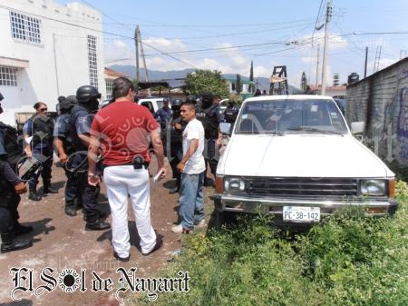 En su huida, aventaron el cuchillo, el que cayó sobre unas láminas de una de las casas, posteriormente abordaron un taxi, pero fueron rápidamente interceptados y detenidos por elementos de la Policía Nayarit.