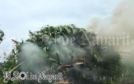 Esta mañana la 13/a. Zona Militar, realizó un intenso operativo inspeccionando por tierra y aire la zona serrana de Amatlán de Cañas, donde localizaron y destruyeron un plantío de marihuana con una extensión de 9 mil metros.