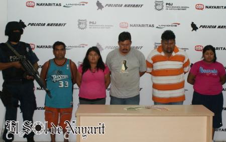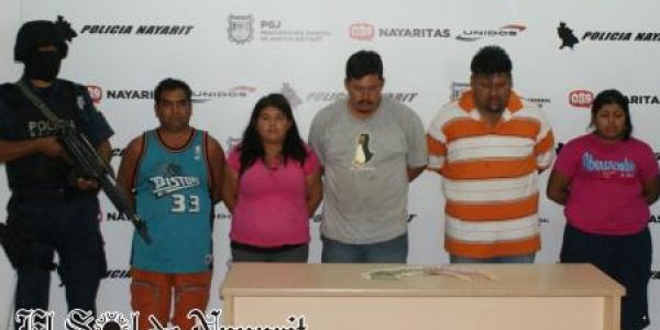 La banda integrada por tres hombres y dos mujeres, fueron capturados en Guayabitos, cuando intentaban comprar diversos artículos con billetes falsos de distintas denominaciones.
