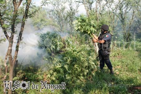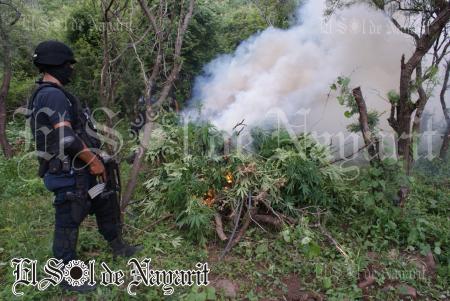En el operativo que corrió a cargo del cuerpo de reacción inmediata de la Policía Nayarit, participaron alrededor de 90 elementos, quienes cortaron e incineraron este enervante.