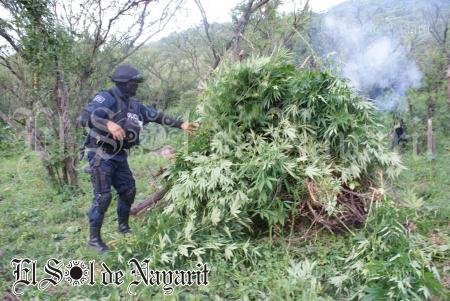 Seis plantíos de marihuana que en su totalidad rebasaban 1 hectárea de superficie, fueron descubiertos por elementos de la Policía Nayarit en las inmediaciones del poblado de San José, en el municipio de Ixtlán del Río.