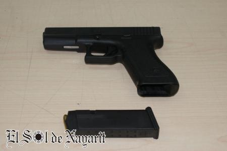 Sobre los hechos se conoce que los detenidos arribaron al comercio denominado Hielo Mexcalteca, el cual se ubica en el interior de Rosamorada, a bordo de un vehículo de la marca Nissan, tipo Sentra, color blanco, con placas de circulación 83-86-MDB del servicio público de taxi, portando uno de ellos un arma de fuego de la marca Glock, color negro, calibre 9 milímetros, con matrícula adf203, amenazando a las personas que se encontraban en el lugar con dichas arma, para después darse a la fuga a bordo del vehículo en mención y ser detenidos minutos mas tarde.