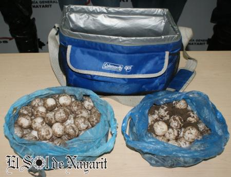 Por lo cual los uniformados se avocaron a la búsqueda de Ortiz Aguilar, logrando ubicarlo a las afueras de un domicilio en la zona centro, el cual llevaba consigo 181 huevos de tortuga.