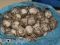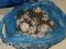 Una hielera en color azul con gris y negro, de la marca Coleman conteniendo en su interior 24 huevos al parecer de tortuga.