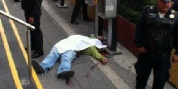 El cuerpo de uno de los presuntos asaltantes quedó en la banqueta, mientras que el del custodio y el otro presunto delincuente, en el interior del centro comercial.