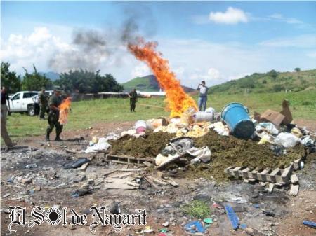 La Procuraduría General de la República, informó que esta mañana el Ministerio Público de la Federación adscrito a la Delegación en Nayarit, supervisó el acto de incineración de un total de una tonelada, 299 kilogramos, 376 gramos y 666 miligramos de diversas drogas aseguradas durante los últimos meses territorio de la entidad.