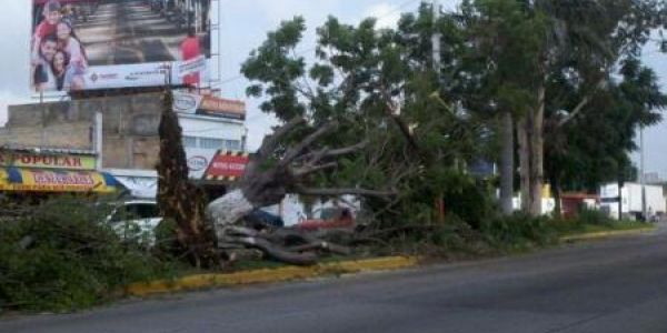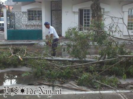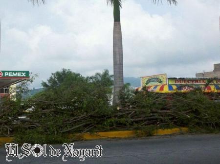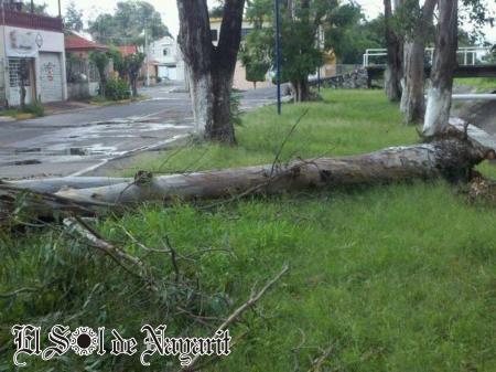 Durante la tarde de este sábado se registraron fuertes vientos en la capital nayarita, los que terminaron por derribar cuatro árboles, dos de ellos por Av. Insurgentes, uno de Ciudad del Valle y otro más en Av. Rey Nayar.