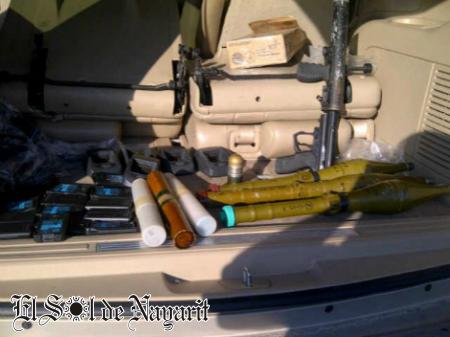 Al resguardar la zona y asegurar la unidad, se encontró un fuerte cargamento que contenía un lanza granadas con una carga activa calibre 40, 3 misiles y sus cargas propulsoras, 20 pilas de radios diversos y cinco cargadores de equipos de comunicación.