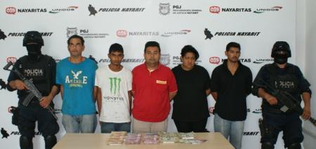 Los hechos ocurrieron la noche del pasado domingo, al filo de las 21:30 horas, en la tienda Elektra ubicada en el crucero de Mezcales, municipio de Bahía de Banderas, en donde los hoy detenidos arribaron con la intención de atracar las cajas de dicha empresa, para posteriormente repartirse el botín que asciende a un millón de pesos aproximadamente.
