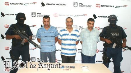 Elementos de la Policía Nayarit lograron este fin de semana la detención de Marco Antonio Martínez Amaral, Paz Rivera Araujo y Manuel Rivera Araujo, presuntos distribuidores de droga en diversas colonias de esta ciudad capital.