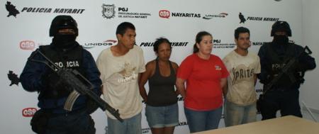 Se trata de Ricardo Alberto Nava Álvarez, Mónica Elizabet López Torres, Ananaoxy Tonathiu Castillo Escobedo y Víctor Hugo Crisanto Ramos, de 39, 40, 26 y 25 años, avecindados en el municipio de Bahía de Banderas, quienes ya fueron consignados por el delito de robo calificado y lo que resulte.