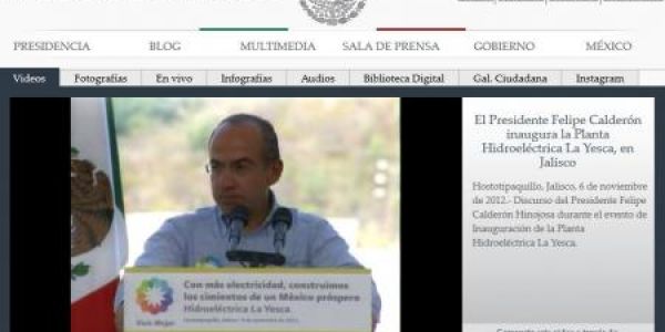 Para muestra de lo anterior, solo basta leer el título que manejó en el video del discurso de Felipe Calderón, el que establece textualmente: El Presidente Felipe Calderón inaugura la Planta Hidroeléctrica La Yesca, en Jalisco.