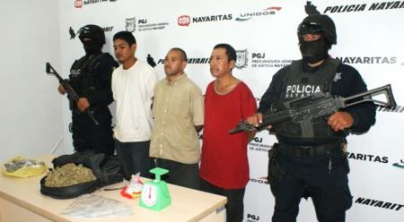 Con la detención de los tres implicados, el encargado del Despacho de la PGJ, Edgar Veytia, refrenda el firme compromiso del Gobernador Roberto Sandoval con la sociedad, de combatir frontalmente a los envenenadores de la juventud para hacer de Nayarit un estado fuerte y seguro para todos.