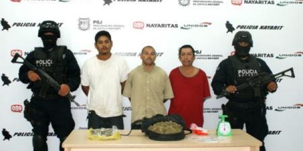 La PGJ emitió un comunicado donde establece que en atención a una denuncia ciudadana, la División Antinarcóticos de la Policía Nayarit montó un despliegue táctico-operativo en el interior de la cabecera municipal de Tuxpan, que permitió la captura de tres sujetos dedicados a la venta de mariguana al menudeo.