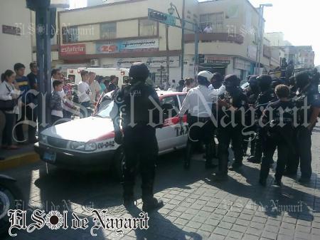 Rápidamente otros elementos de la Policía Nayarit, pusieron bajo custodia al taxista, mientras los dos agentes lesionados eran trasladados en las propias patrullas a un hospital para que recibieran atención médica.