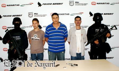 Esta tarde, en las instalaciones de la Procuraduría General de Justicia presentaron a los tres detenidos responsables de haber realizado una serie de detonaciones de arma de fuego en la colonia Caminera y Fraccionamiento Castilla de Tepic.