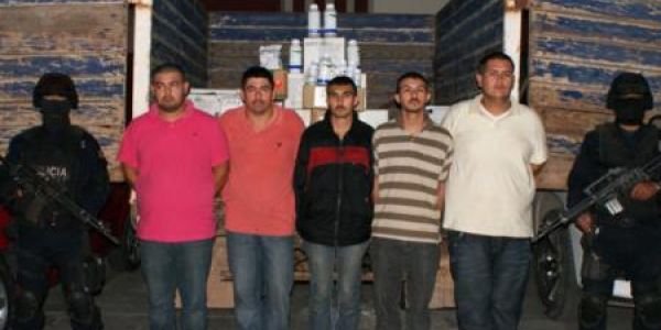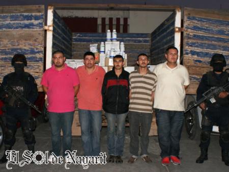 Se trata de Rafael Argenis Gil García, Christian Jesús Gil García, José Feliciano López Castro, Ignacio Blanco Urías y Víctor Manuel Molina Blanco, de 25, 22, 26, 27 y 33 años de edad, originarios del estado de Sinaloa, uno de los cuales sometió con un arma de fuego al encargado del negocio de fertilizantes que se localiza en el Libramiento de Tepic.