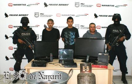 En un comunicado oficial emito esta tarde por la Procuraduría General de Justicia del Estado informa que elementos de la División de Robos y Asaltos de la Policía Nayarit detuvieron a tres sujetos implicados en una serie de robos a casas habitación y restaurantes; se trata de Irving Geovany Parra Hernández, Roberto Carlos Pérez Álvarez y José Guadalupe Mejía Salas.