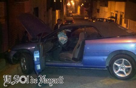 En un comunicado emitido por la Secretaría de Seguridad Pública Tránsito y Vialidad, informó que siendo aproximadamente las 03:50 horas de este lunes, al ir circulando los oficiales de la Policía Municipal por la calle Querétaro, tuvieron a la vista un vehículo color azul circulando en sentido contrario de norte a sur por la misma calle Querétaro, haciéndolo a exceso de velocidad, por lo que de inmediato se le indicó al conductor que se detuviera, haciendo este caso omiso y continuando su trayectoria, tratando de darse a la fuga, dando vuelta a la altura de la calle Mina sobre Querétaro con dirección hacia la Insurgentes quien al hacer esa maniobra alcanzó a impactarse con la banqueta perdiendo el control de su vehículo marca Chrysler, tipo Sebryng JX color azul con placas de circulación RFD-64-20 de Nayarit, ocasionando esto que los tripulantes resultaran lesionados.