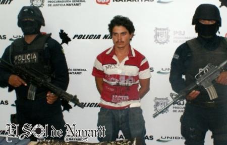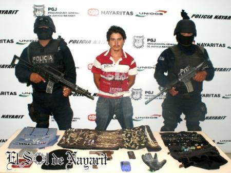 Fue a las 03:00 horas de este martes cuando elementos de la Policía Nayarit lograron ubicar en la cabecera municipal de Compostela a Rangel López y a tres menores de edad, quienes circulaban a bordo de una camioneta Ram color rojo, en cuyo interior fue encontrado el botín robado -oro, plata y fantasía- y un arma de fuego.