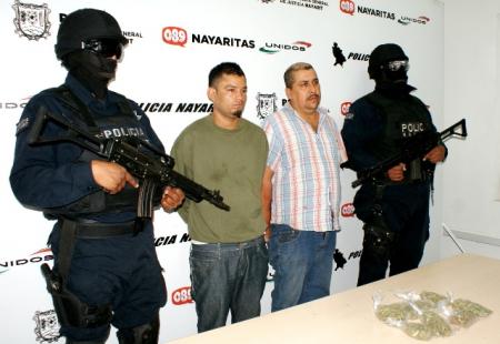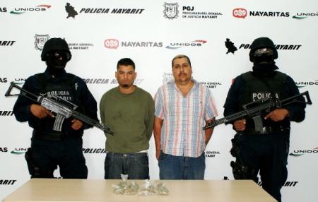 Se trata de Víctor Eduardo López Jiménez y José Luis Robles Espinoza, quienes se dedicaban a la venta de estupefacientes; ya están presos en el CERESO de Tepic.