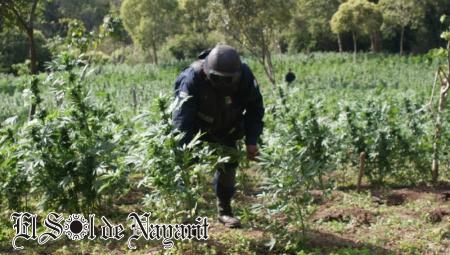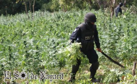 *Con el apoyo del helicóptero 'Apache', la Policía Nayarit localizó el plantío en un predio de 8 mil metros cuadrados ubicado en las inmediaciones del poblado Jaltepec, municipio de Compostela.
